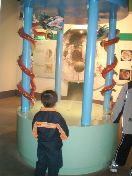 好愛天文的人, 一生中必須看到三大天文大事: 超大流星雨, 大慧星和日全食. 在此之前我一個都沒有看到, 所以 一聽到民權國小天文社舉辦這個活動, 就二話不說報名參加. 果然, 這以旅行沒讓我們失望. 出發的時候7月29日前一天還放颱風假, 到了新彊烏魯木齊天空一片烏雲, 晚上一顆星星都看不到. 人家說:一顆星保一日晴, 心情懷抱期待的心, 希望明天撥雲見日. 第二天, 到了敦煌的時候, 天空還是烏雨密佈, 去月牙泉騎駱駝時, 還刮風, 且下了一點小雨. 當地導遊說一年365年只有10天下雨天, 竟然被我們遇到. 雖然天氣涼爽, 騎駱駝蠻舒服的, 但是心裡還是有些疙瘩在. 幸好第三天到嘉裕關時, 太陽公公出來了, 天空只有20%的雲朶, 心裡踏實許多. 晚上PK找到觀測星空的好地方, 在嘉裕關城門外. 我們一群人浩浩盪盪的前來, 結果往嘉裕關的路有柵欄圍著, PK跟卡車人員交涉許久終於讓我們過去了. 當快靠近城門外時, 又有土堆擋住去路, 於是我們下來用走的過去. 一路上伸手不見五指, 只能靠手電筒指引. 當我們開始觀測時, 大家手電筒全部關閉. 這時全天空的星星全都跑出來了. 因為這裡的緯度約40度, 可以看見北斗七星和仙后座同時掛在天上, 這是在台灣所不能看見的. 試著想要拍下星空和嘉裕關, 但因為我的傻瓜相機的功能不够, 所以只有拍到非常不清楚的嘉裕關. 隔天就是日全食, 有了滿天星星的保証, 對於看到日全食的機會更有信心.